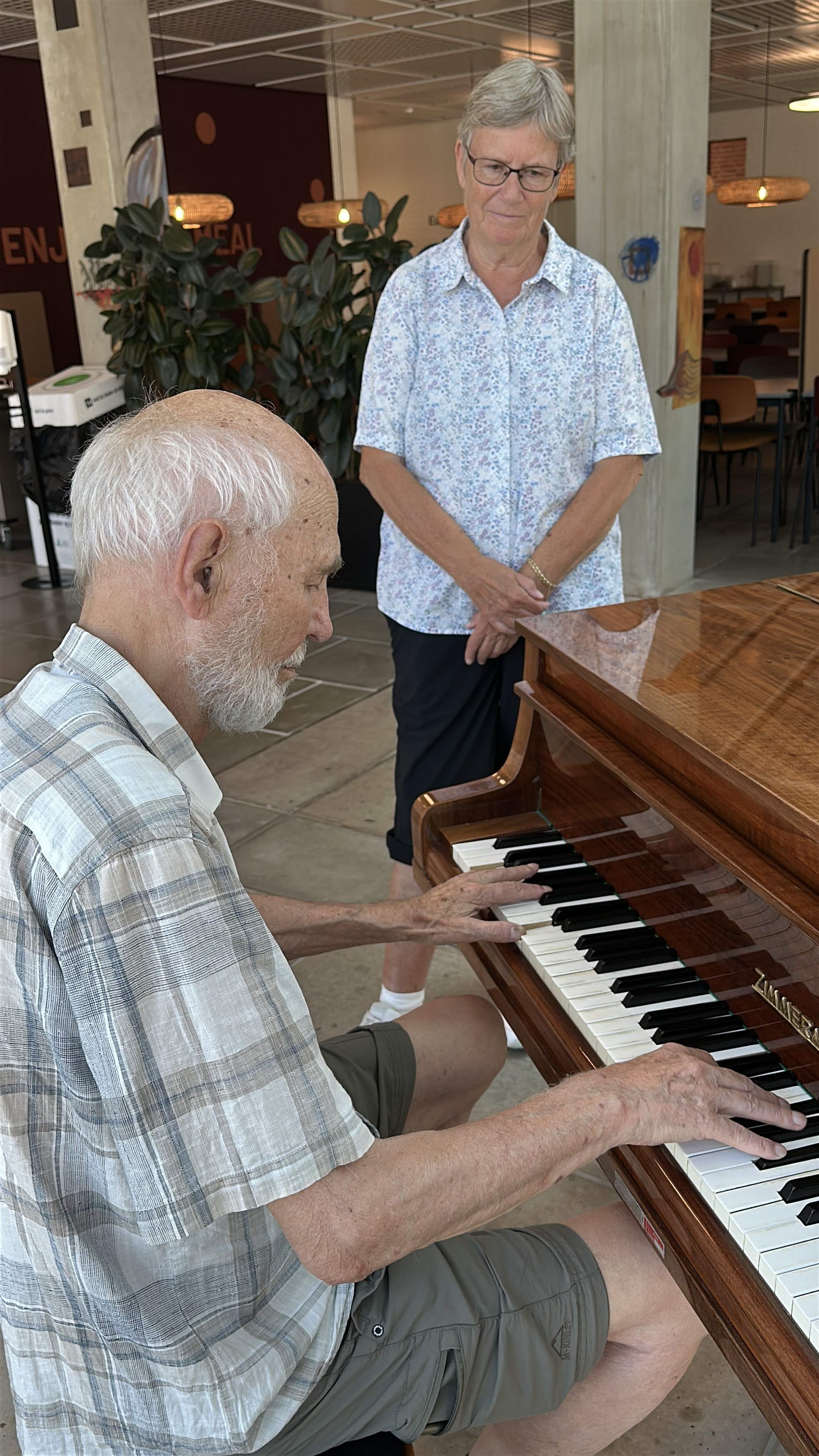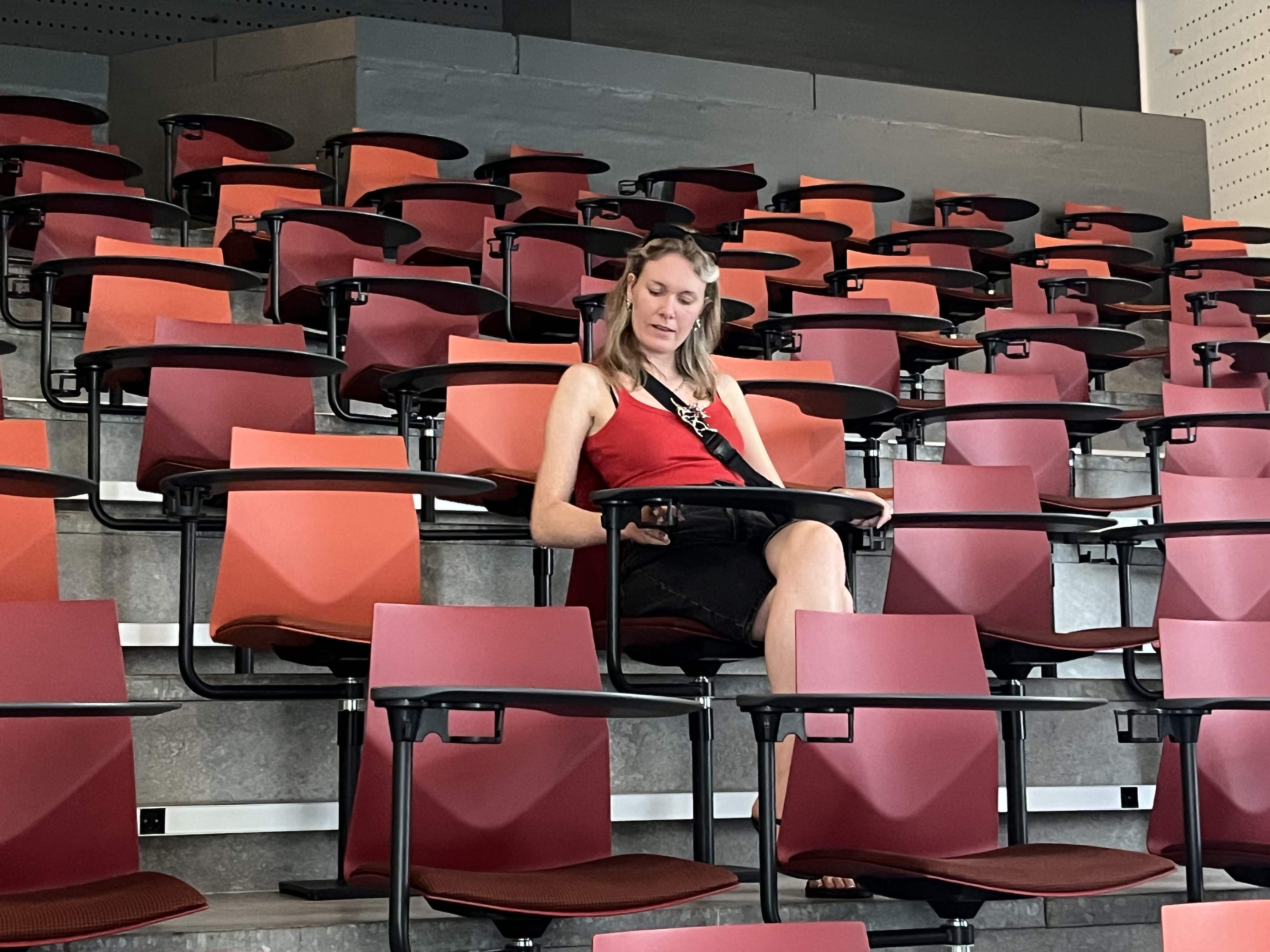 stod der et flygel, som jeg lige måtte afprøve både alene og sammen med Mia, hvor vi lige testede, om vi kunne huske ¨Princesse Toben’. Vi kiggede også lige på et flot auditorium med plads til ca. 120 personer. |
