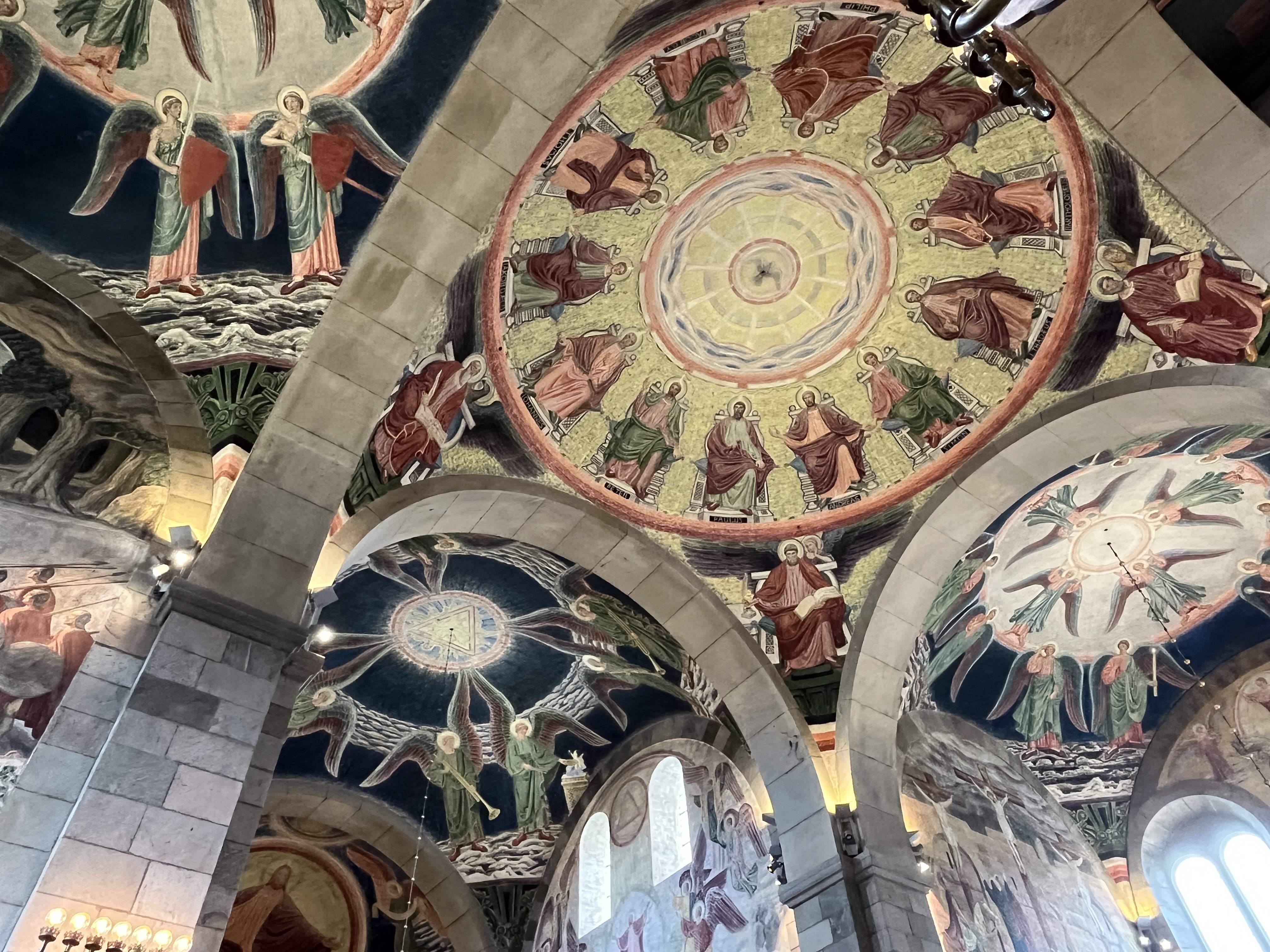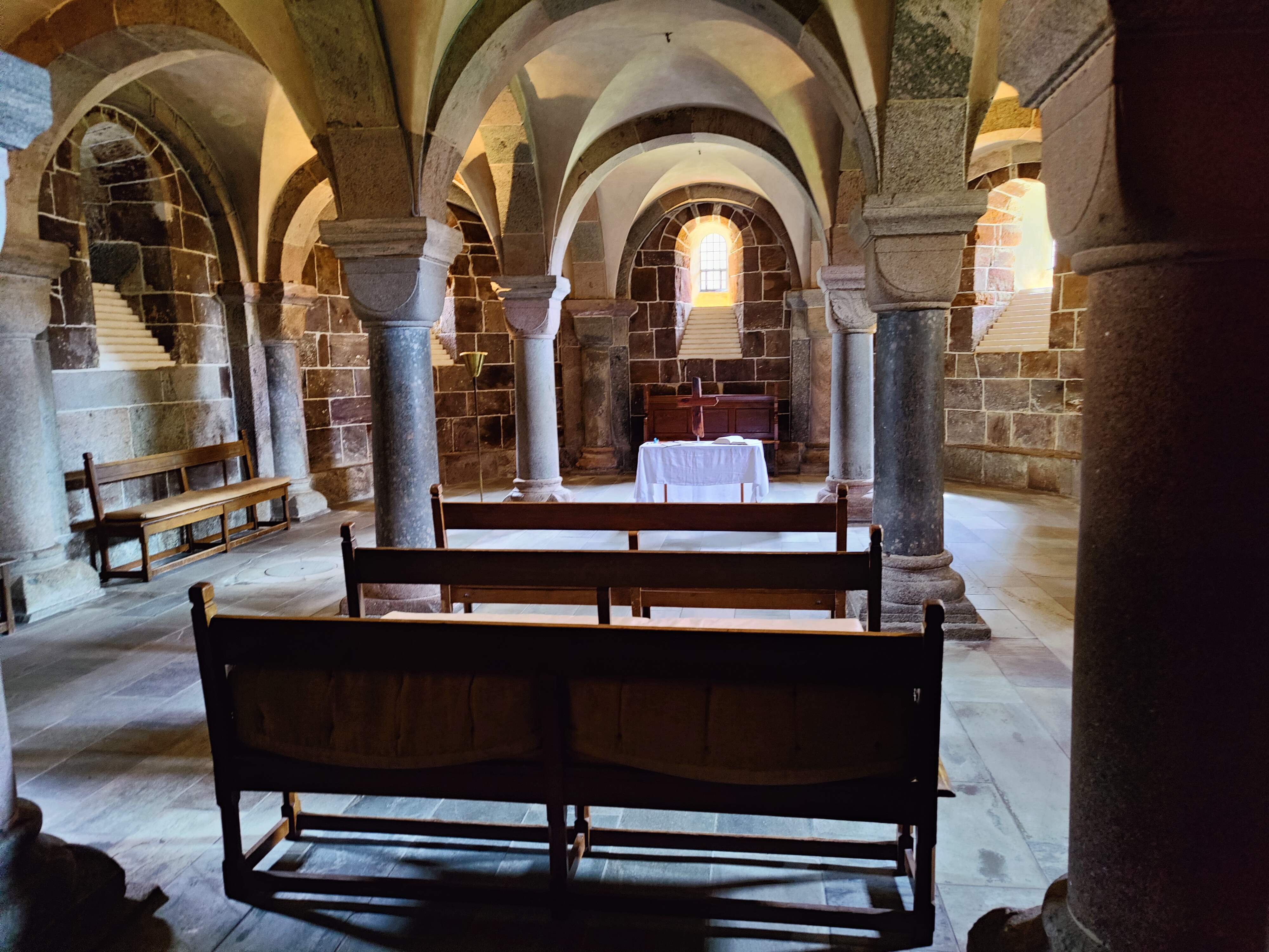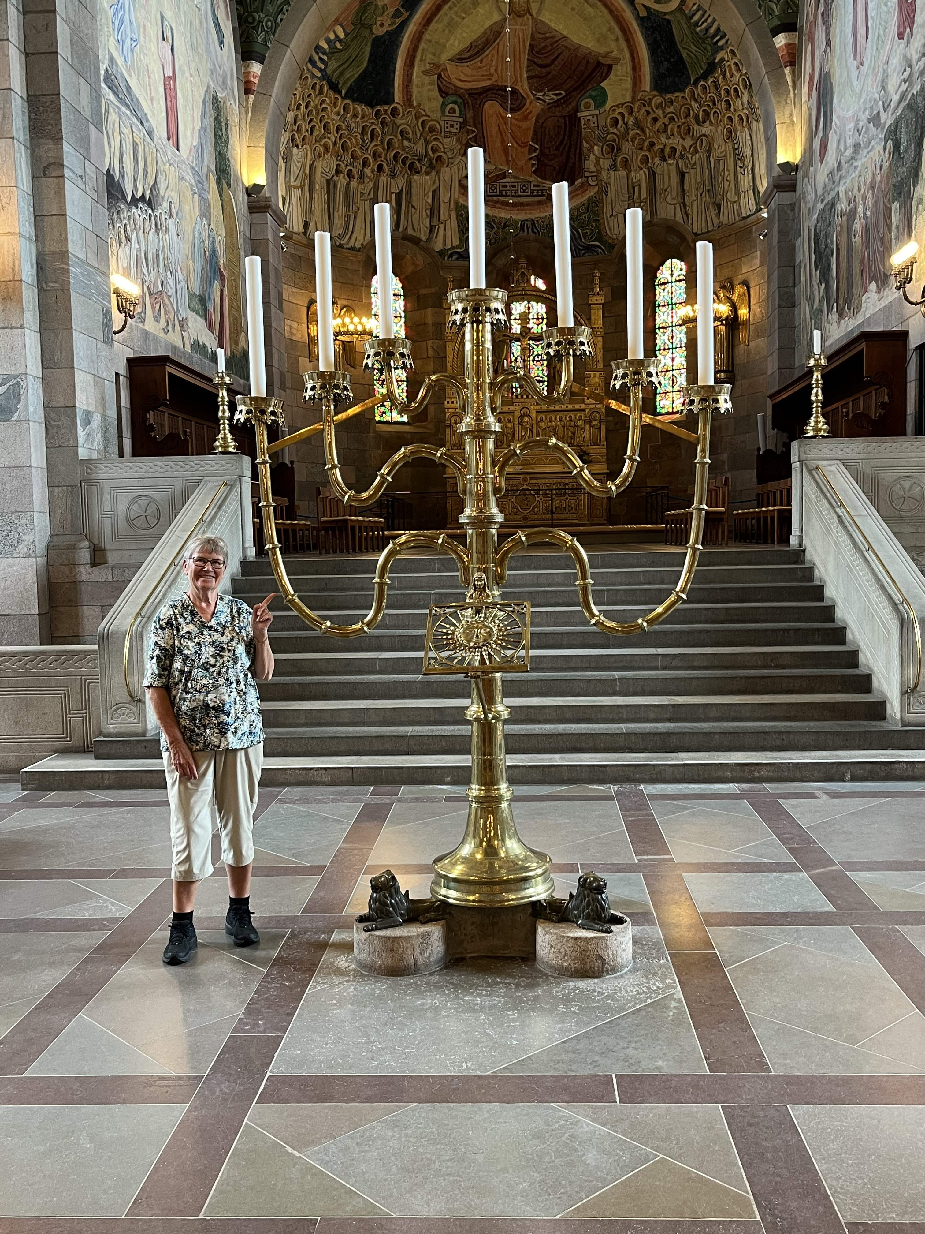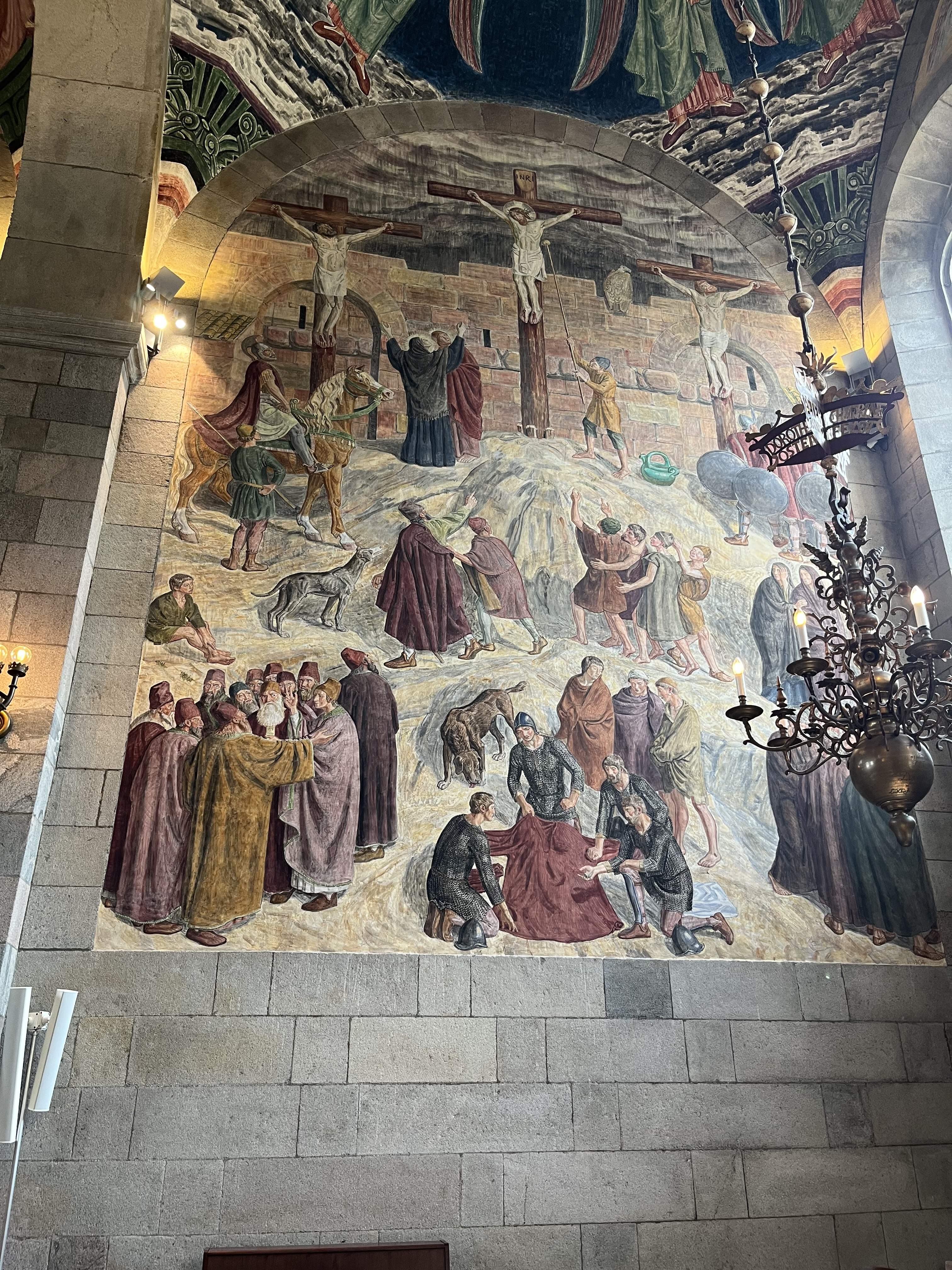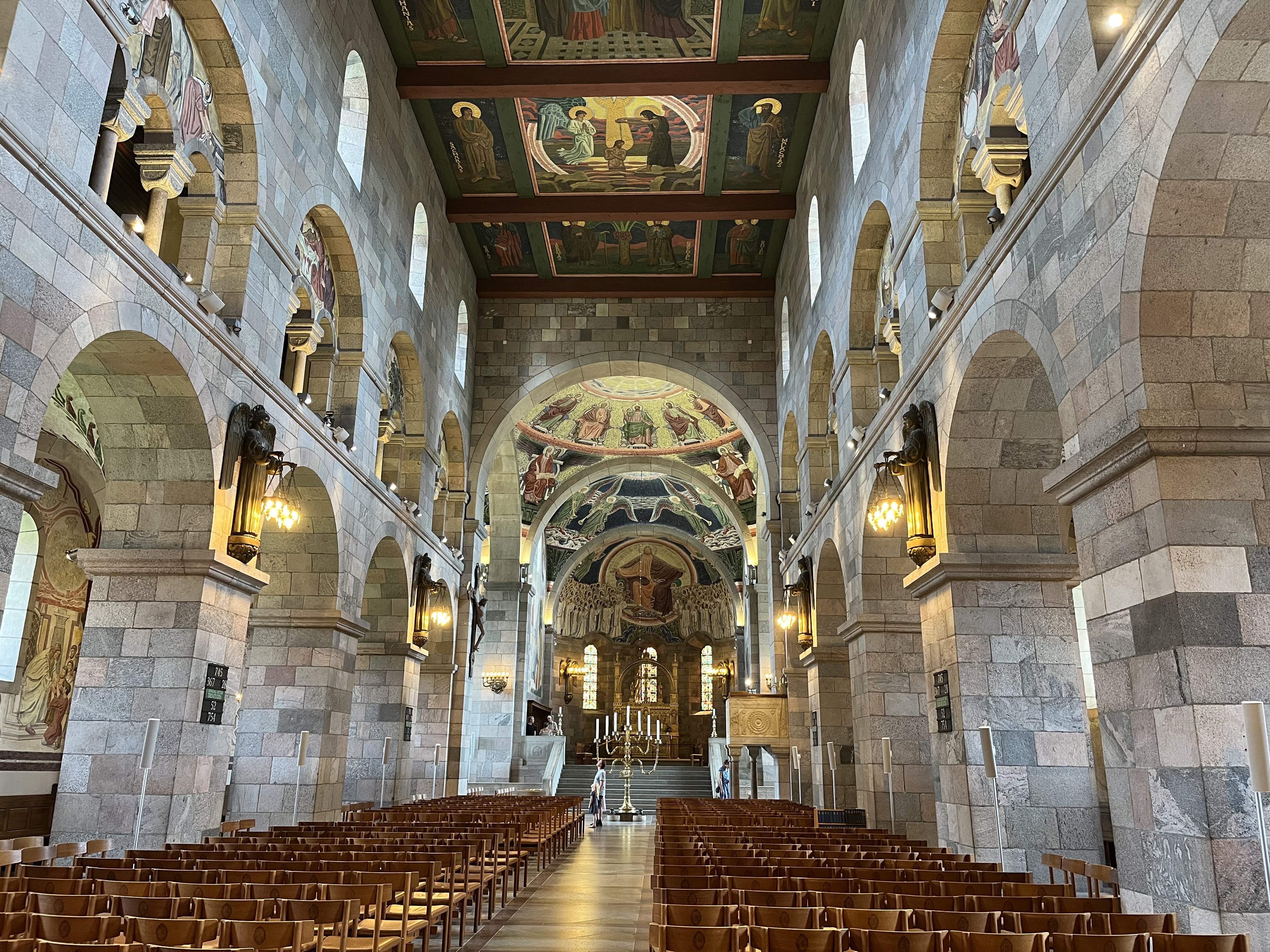 ville stoppe i Viborg og se domkirken. Og det gjorde vi så. Den var stor og flot og udstyret med mange flotte kalkmalerier. Vi fandt også ned i krypten i begge ender, hvor der var et fint toilet i enden under tårnene og et stort rum med mulighed for særlige messer i alterenden. |