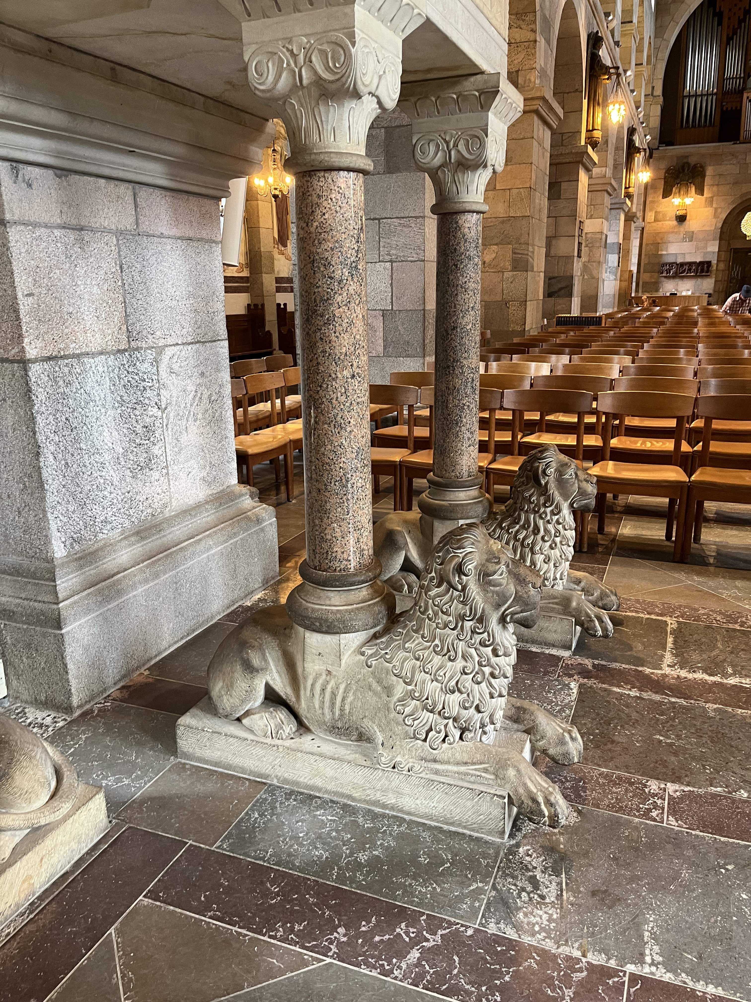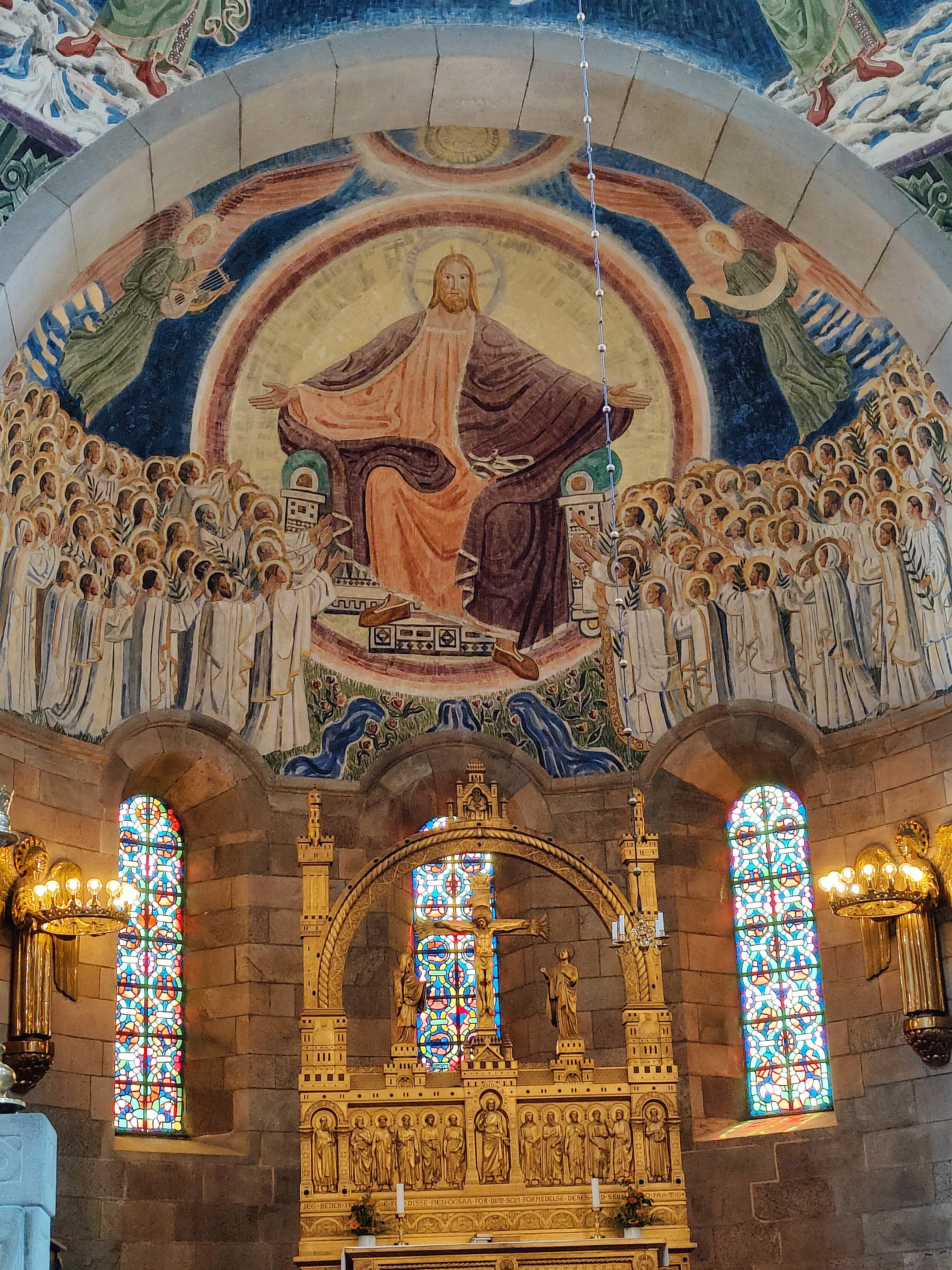 | Viborg Domkirke St. Marie eller Vor Frue af Viborg. Omkring 1060 blev Viborg Stift oprettet, idet Svend Estridsen delte Ribe bispedømme i fire: Ribe, Århus, Viborg og Vestervig. Allerede da var Viborg en stærk kirkeby med sine 12 sogne. Man ved ikke, om der har ligget en ældre kirke, hvor kampestenskatedralen blev opført under kong Niels (1104-34). I denne væksttid for den danske kirke blev også bygningen af de beslægtede domkirker i Lund, Slesvig og Ribe iværksat. Viborg Domkirke blev opført som en lang korskirke med to vesttårne, to smukke østtårne og sideskibe, højkor og krypt, der først blev færdiggjort, da biskop Eskild den 20. oktober 1133 blev myrdet under ottesangen i St. Margrethes Kirke i Asmild. Mordet på biskoppen var et led i borgerkrigen, og den senere konge Erik Emune menes at stå bag drabet. Mens Ribe Domkirke blev bygget af tufsten, blev Viborg især rejst af kampestenskvadre. Den genstridige granit blev besejret af jysk stædighed og skønhedsvilje, og kirken er helt unik i anvendelsen af dette bygningsmateriale. Viborg Domkirke er formentlig verdens største granitkirke (den næststørste herhjemme er Vestervig). Allerede inden kirken var helt færdig, truedes den i ca. 1145 af en brand i byen, men domprovst Kjeld, der døde i 1150) ilede efter legenden op i et af tårnene, og på hans bøn stilnede branden af ved kirkens fod. I 1501 ramtes kirken af en lynbrand. Vesttårnene, korsarmenes gavle og det øverste af apsis blev ødelagt. Biskop Niels Friis nåede inden sin død i 1508, at få kirken genopført. I reformationstiden blev Viborg ved Hans Tausens virke et åndeligt foregangssted. Den evangeliske gudstjeneste kunne indføres i Domkirken i 1530, men allerede i 1567 hærges hele byen af en brand. Cirka 100 adelsgårde lægges i aske, og Domkirken gik heller ikke ramt forbi. Genrejsningen tog lang tid. Tårnene fik slanke spir på godt 55 meter - 13 meter højere end de nuværende! Næste brand indtraf i 1726, hvor disse store spir knuste kirkens hvælvinger. Efter denne katastrofe stod kun de nøgne mure og nogle rester af hvælvingerne tilbage. Denne gang skete genopførelsen i rekordtempo af Altona-bygmesteren Claus Stallknecht. Han genrejste Domkirken, Sortebrødrekirke og bispegården samt opførte rådhuset og en fløj af hospitalet for 36.000 rdl. Kirken fik "snekkegavle" på tværskibet og "kalotter" på tårnene. I det indre kom nye hvælvinger til, og ligeså en stor prædikestol samt en kolossal altertavle. Herefter blev kirken genindviet i 1730, men arbejdet var ikke udført godt. Trods gentagne reparationer begyndte hvælvingerne at åbne sig, og kirken blev lukket i 1862. I 1864 startede genopførelsen efter bl.a. en landsindsamling (100.000 kr.), og alterets grundsten blev nedlagt af kongen i december. | Arkitekterne Nebelong og Julius Tholle ledede arbejdet, men efter begges død i 1871 blev det afsluttet af professor H. B. Storck, med indvielse den 10. september 1876. Ved genopførelsen brugte arkitekterne malede lofter, og det blev historiemaleren F. C. Lund, der dekorerede midterkuplen og apsis (med samme motiver, som senere Skovgaard). Prædikestolen er udført i Bremersandsten af billedhugger C. J. Rosenfalk og bæres af tre polerede granitsøjler, som hviler på liggende granitløver, modelleret af H. Bissen. Skibet oplyses af otte 2 meter høje bronzeengle med lysklaser og koret af to engle med lysklaser. Alle er tegnet af Joakim Skovgaard i 1911. Den store ombygning havde som mål at genskabe den oprindelige kirke. Med hård hånd afklædte man bygningen næsten al dens historie, men som kirken nu står, er den det klareste eksempel på den ideale romanske storkirke. Dens første mestre har bestemt rummets harmoniske forhold: længden af midtkirken er den dobbelte af tværskibets, og korets kvadrat overholdes i hvert af tværskibets tre partier. Siden er Joakim Skovgaards kalkmalerier kommet til som en protestantisk billedbibel, enestående i sin art. Det har atter gjort kirken til et turistmål og valfartssted, der må opleves og ses, når man er i Viborg. Det gyldne alter er tegnet af H. B. Storck og modelleret i forgyldt metal på egetræ af billedhuggeren, professor C. C. Peters. Alteret er udført i stil med Valdemartidens metalaltre. I altertavlens midterfelt ses et maleri af Vor Frue med Jesus omgivet af billeder af Jesu liv. Foran knæfaldet ligger en stor sort sten på det sted, hvor Erik d. 5. (Klipping) blev gravsat efter mordet i Finderup St. Cæcilienat d. 22. november 1286. Det kongetro domkapitel klædte liget, der var gennemboret af 56 dødelige sår, i rødt silke inden han blev lagt i sin blykiste sammen med sit store slagsværd og andet. Ad nedgange ved kortrappen når man "Kraftkirken" eller "Den skjulte kirke". Det er biskop Eskilds krypt, der samtidig er det ældste romanske rum i Danmark. Hvælvingerne hviler på seks søjler, de to midterste af poleret porfyr, mens resten er af granit. I væggene er foruden granit anvendt jernal fra heden - eller måske er det "rødsten" fra Fur og frådsten (kildekalk - på Viborgegnen kaldet "bakkesten"). Kirkens første alter, formodentlig for Vor Frue, stod i en niche mod vest. I et nordre kryptkapel findes en yderst sjælden ligkiste af granit og hugget af én sten. Øverst er et særskilt rum til hovedet og i bunden ses afløbsrender! Antagelig er kisten fra det 12. århundrede helt tilbage fra kirkens tilblivelsestid. Spørgsmålet melder sig da, om den har rummet en af de bisper, der byggede kirken: Eskild, Svend eller Niels? Eller kirkens egen helgen, domprovst Kjeld? I kryptens søndre kapel ses Sct. Kjelds brønd, hvor mange syge, især blinde, blev helbredt. |