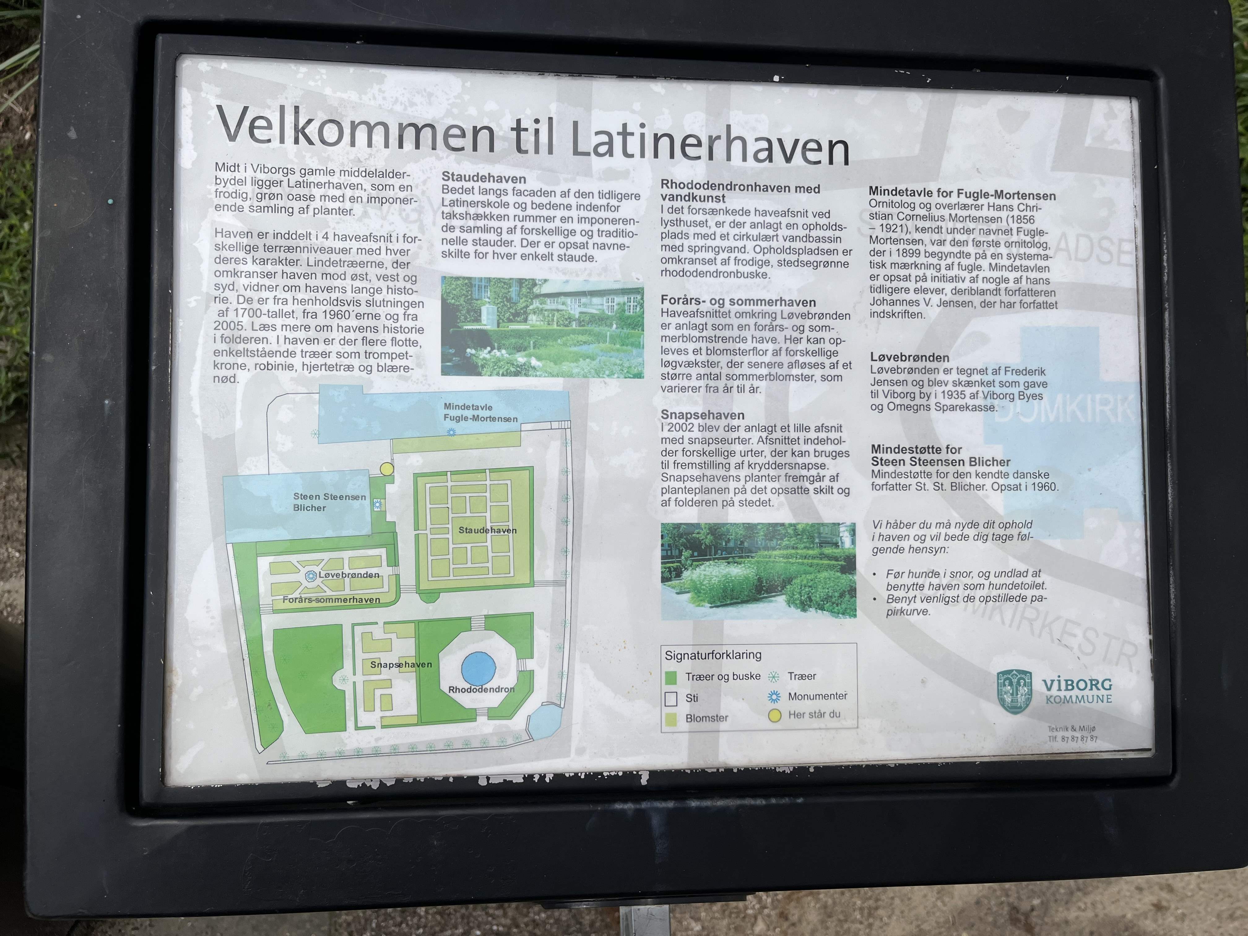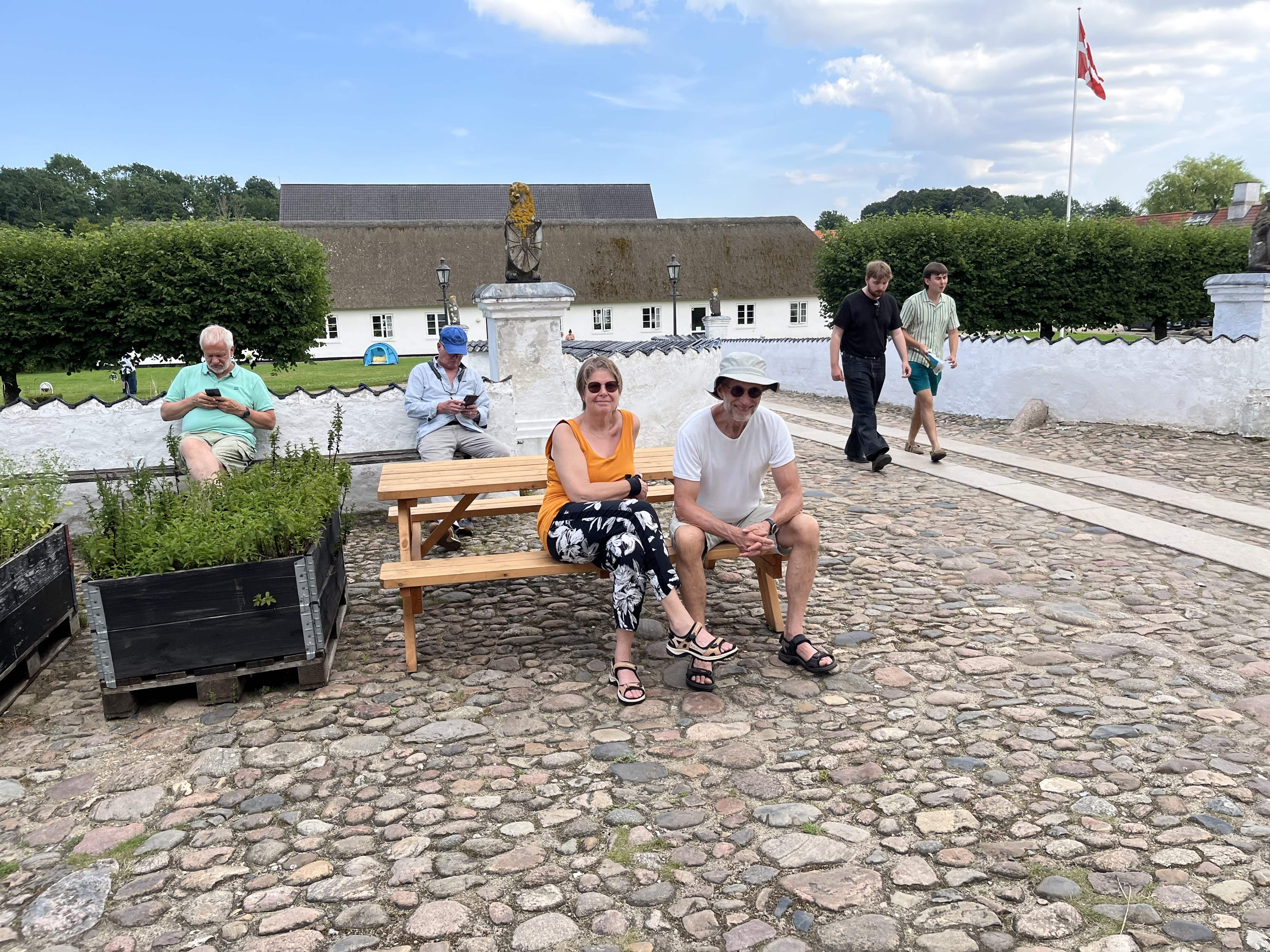 Vi gik også en lille tur i selve byen, men den var nærmest uddød – det var jo søndag ved middagstid, så det blev bare til en is og det var jo i grunden slet ikke så galt. Så kørte vi direkte til Mette og Peter, som ventede med kaffe og en hyggesnak på terrassen, mens skyerne trak op alle vegne omkring os – dog uden at falde ned. Vi gik en tur til Engelsholm Slot, som ligger overfor deres hus lige på den anden side af søen. Her var der sket store forandringer. Vi kunne næsten ikke kende det igen, siden vi var der sidst med Silja for 12 år siden. |